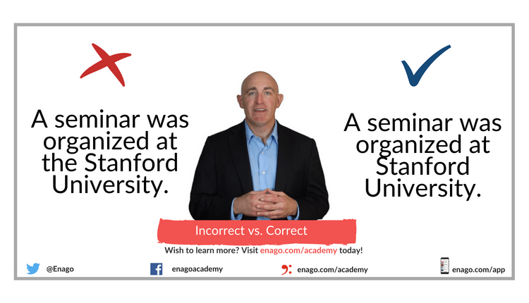 A seminar was organized at the Stanford University. (Incorrect)